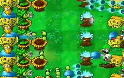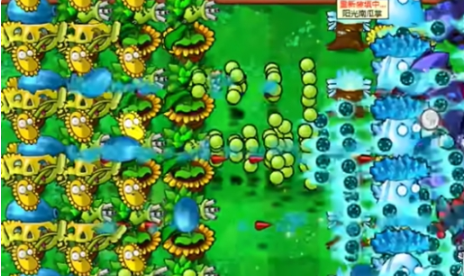 3、在左側(cè)補充一列寒冰大噴菇和一列狂野機槍射手,在右側(cè)補充一列陽光仙人掌。