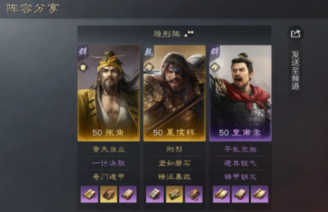 張角攜帶【一計(jì)決勝】讓敵軍虛弱,降低敵人傷害,配合夏侯?lèi)突矢︶缘慕祩Ч?,整體隊(duì)伍的生存能力能進(jìn)一步提高,然后【奇門(mén)遁甲】可以配合“嘲諷”、“虛弱”等狀態(tài),增加傷害和“震懾”概率,使隊(duì)伍功能性更全面。