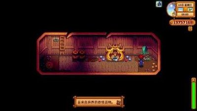 3、完成社區(qū)獻(xiàn)祭任務(wù)或者joja線后,去泡溫泉的地方完成法師和女巫的任務(wù),從法師家或女巫家的法陣去法師家的地下室,把晶石放在底座上。