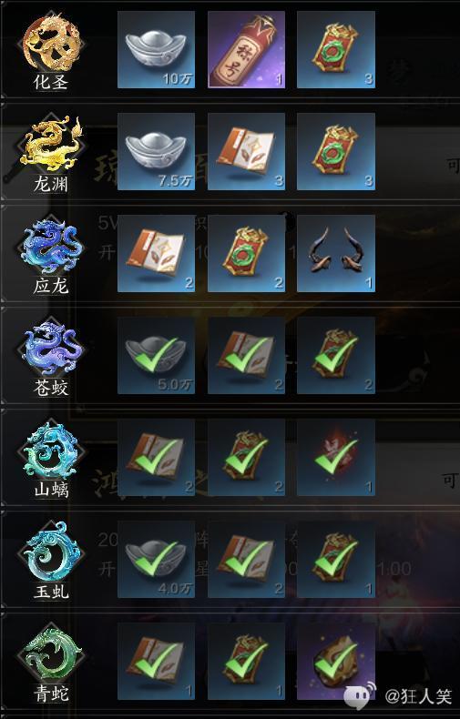 個(gè)大段位),共有十個(gè)段位分別是玉尾、錦鱗、驚鯢、青蛇、玉虬、山螭、蒼蛟、應(yīng)龍、龍淵、化圣。