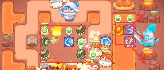 4、中間炮塔放的差不多就向右開圖,可以在巖漿上打箱子爆出火瓶,之后快速打醒武士。