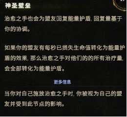 圣騎士的治愈之手技能點(diǎn)出神圣壁壘天賦后,搭配手套實(shí)驗(yàn)詞綴可以把所有治療量轉(zhuǎn)化成護(hù)盾。