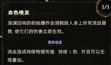 深淵回響除了能瞬間結(jié)算流血層數(shù)外,擁抱黑暗節(jié)點(diǎn)提供對致盲敵人20傷害總增