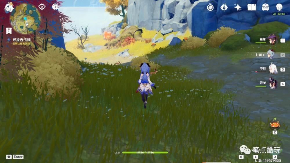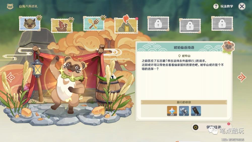 3,對話后吉法師很想去找仙人玩,一直跟隨吉法師蹦跳著下山,其實就是途徑所有大琥珀的路線。