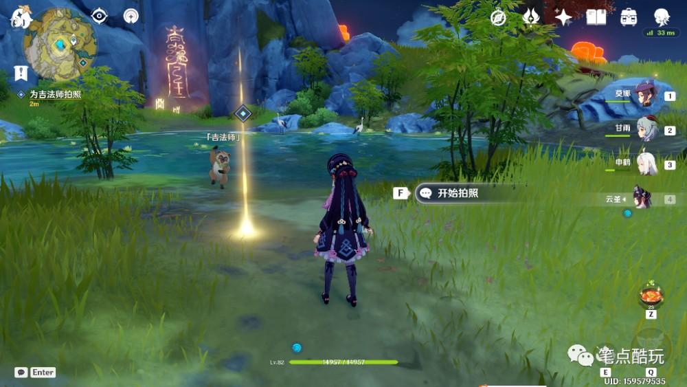 1,領取任務后,直接傳送到琥牢山錨點,來到理水疊山真君的洞府前,對話后給吉法師拍照留念。