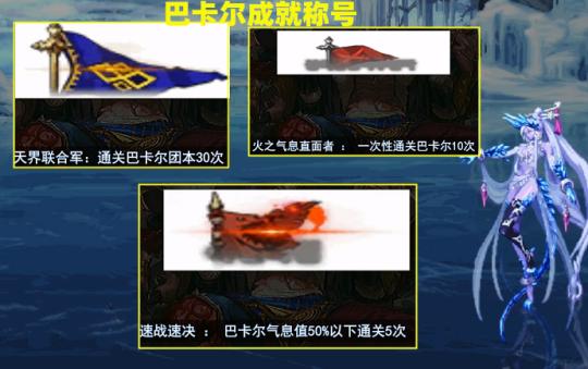 ①天界聯(lián)合軍稱號(hào),旗幟外觀設(shè)定,需通關(guān)30次巴卡爾團(tuán)本解鎖;