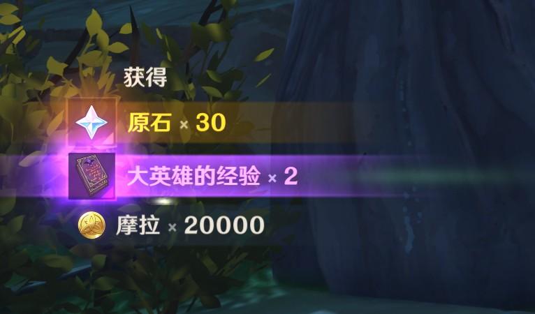 任務(wù)獎(jiǎng)勵(lì)原石*30,摩拉若干,大經(jīng)驗(yàn)書(shū)*2