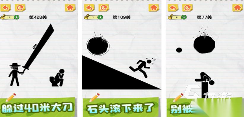 常規(guī)的火柴人一般都和戰(zhàn)斗相關(guān),但是在畫線火柴人這個游戲里,會在豎屏的紙張背景上設(shè)定一些趣味的謎題,每個玩家都需要通過畫線的方式,幫助火柴人破解場景里的危機,每個關(guān)卡中的設(shè)定都不一樣,需要在游戲里不斷思考,找到正確的通關(guān)方法,在游戲里會有大量的關(guān)卡,每一關(guān)都非常考驗玩家的能力。