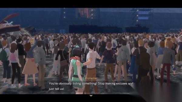 2、與其中一名抗議者交談以穿過人群進(jìn)入。然后向東行駛。