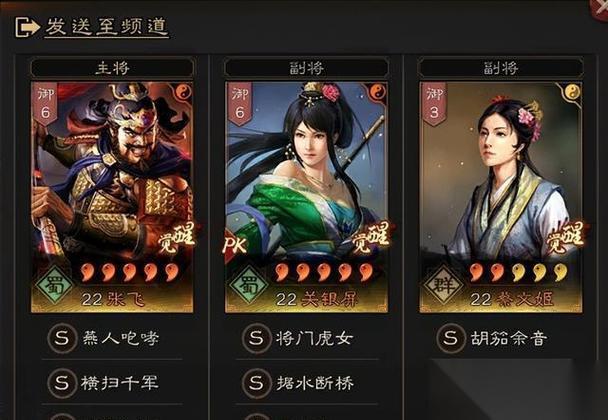 在選擇武將的基礎(chǔ)上,需要根據(jù)武將的特點(diǎn)和能力,選擇合適的武將組成陣容。在S5關(guān)銀屏中,推薦以曹操、夏侯惇、張遼、許褚、曹仁為主力,輔以郭嘉、張昭、徐盛等人。
