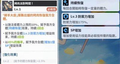 恰米的必殺技也就是大招叫做燒烤派對時間,大招效果會針對全體的隊友帶來治療以及增益,增益是放在防御上面進行加持的,這里的話也可以配合概率的效果進行使用,這樣整個隊伍在一些打持久戰(zhàn)的情況下,也可以保證自己技能冷卻的時間比較,適合進行循環(huán),后期也可以越打越穩(wěn),那么在覺醒之后,她的被動效果就是在每個回合結(jié)束之后才可以觸發(fā),此時如果隊友身上的血量數(shù)值比較低的情況下,恰米還可以為這個角色帶來恢復(fù)的能力,當(dāng)然這里恢復(fù)的話只能帶來最大生命值3%的數(shù)值回復(fù),這還是達到了2級覺醒才可以帶來的數(shù)值。