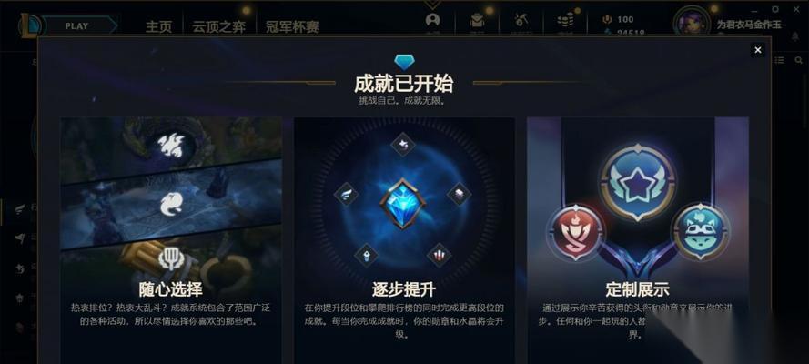 英雄聯(lián)盟(LeagueofLegends,簡(jiǎn)稱LoL)是由RiotGames開發(fā)并運(yùn)營(yíng)的一款多人在線戰(zhàn)斗競(jìng)技游戲。成就系統(tǒng)是游戲中的一個(gè)特色功能,旨在獎(jiǎng)勵(lì)玩家在游戲中的表現(xiàn)和特定行為。了解成就系統(tǒng)的解鎖條件和獎(jiǎng)勵(lì)不僅可以激勵(lì)玩家積極游戲,還能為他們帶來額外的成就感。本文將為您詳細(xì)揭示英雄聯(lián)盟成就系統(tǒng)如何解鎖,解鎖條件和獎(jiǎng)勵(lì)。