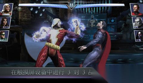 一個DC漫畫主題的格斗手游,游戲劇情是DC世界平行宇宙,超人失控建立獨裁政權、蝙蝠俠率隊進行反抗。玩法上采用3V3小隊格斗,點擊屏幕能進行攻擊、釋放技能,能量槽滿了可以放超必殺,場景中也加了一些互動元素,比如利用建筑碎片攻擊敵人。游戲中包含DC宇宙中很多角色,甚至還有同一個角色的不同陣營版本。