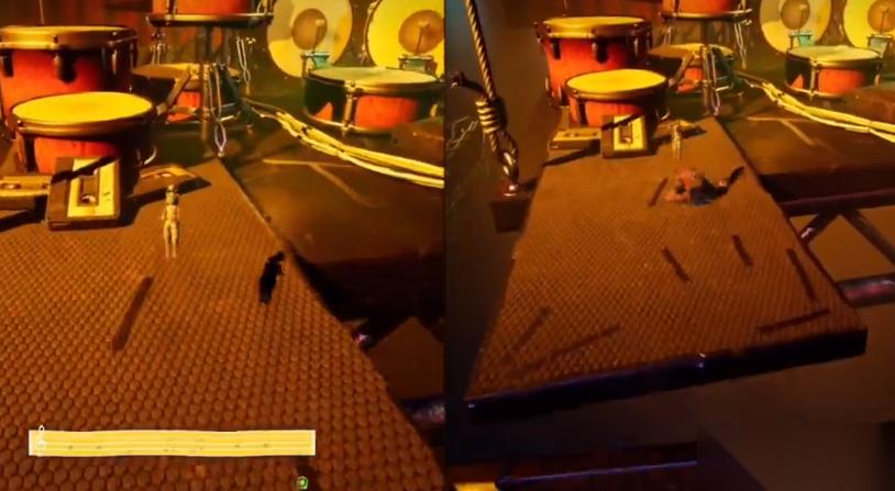 里面有的位置有激光,需要科迪舉唱片抵擋激光過去。科迪上去之后用唱片把電線隔斷,下方平臺升了起來,順著樓梯前往新的平臺。兩人合力操作來到架子鼓的房間,通過在架子鼓上彈跳來到唱片上,小梅唱歌使唱片升起。前面有很多架子鼓不用管,需要跳到第一個鼓上來到右手邊的唱片上,小梅唱歌使其升起,通過滑索下來把兩個磁帶放好,來到下一個空間。