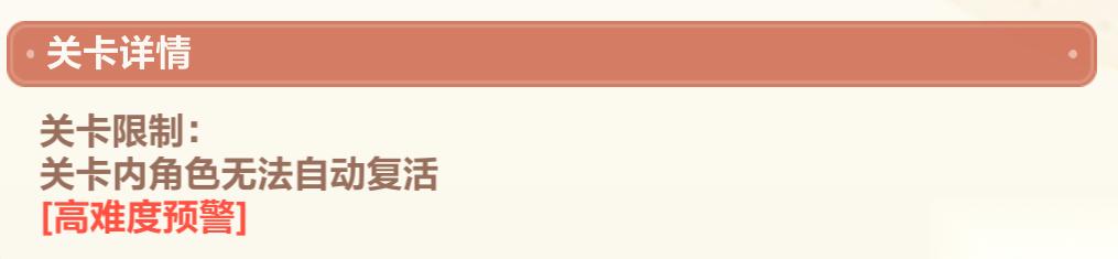 在角色達到30級后,普通關(guān)卡都可以通過練度碾壓過去,我們就僅需要注意有【高難度預(yù)警】的關(guān)卡。