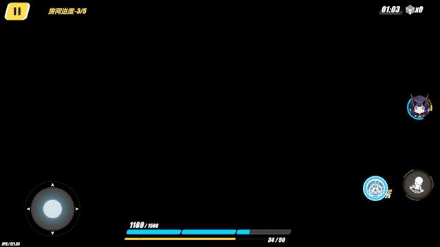 向一個方向沖刺,若場上沒有冰柱,則召喚一個可以分割戰(zhàn)場的冰柱,角色僅能跨過冰柱去到另一側(cè);若場地中有冰柱,本次沖刺命中冰柱時將會擊碎冰柱,隨即場上將會落下小冰球,造成較高傷害。