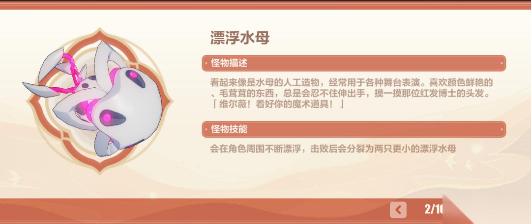 擊殺后會分裂小水母,小水母在死亡時會濺射到周圍開始蓄力自爆,若還未開始蓄力就碰撞到角色則會直接爆炸。擊殺小水母時要保持距離,并且遠(yuǎn)離死亡后開始蓄力的怪物。