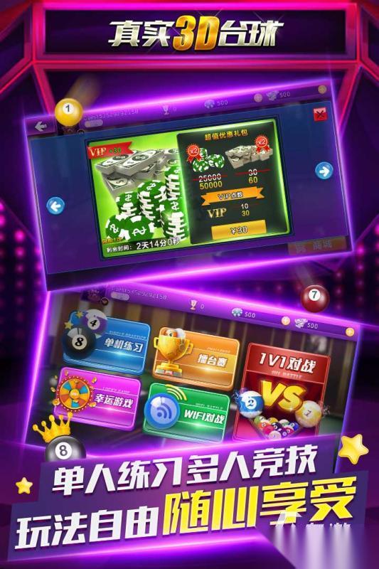 《街機臺球大師》從桌面再到球桿全局3d立體模型的設(shè)計,再結(jié)合著每一次擊球那光影流轉(zhuǎn)的效果,對比現(xiàn)實臺球而言絲毫不遜色,另外還配備了單人訓(xùn)練、好友約戰(zhàn)等模式,讓玩家可以在極致放松的情況下去精進自己的技藝,此外還添加了多種類型奢華高端的球桿,打造了和真實臺球如出一轍的線上公開賽。