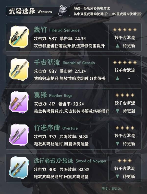 仇遠武器首選專武裁竹,其余武器可以考慮加共鳴效率的武器。