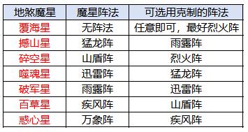以下給大家列出了各魔星的陣法及強(qiáng)克陣法關(guān)系: