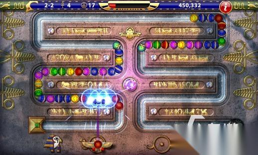這款游戲把古埃及神話同經典的祖瑪玩法融合,玩家需發(fā)射各類彩色珠子,把相同顏色的珠子合成三顆或者更多,使其消失,直至清除全部珠鏈。這款游戲與普通祖瑪游戲不同,它給每個珠子加上神秘的古埃及文化背景,各種顏色和符號均象征著不同的神祇與魔法,玩起來別具一格。