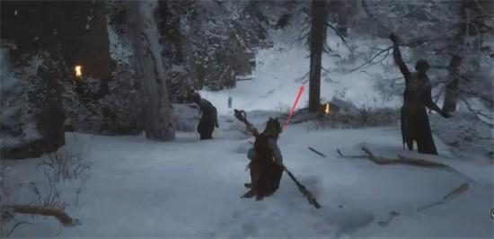 3、從快活林土地廟出發(fā)前往罪業(yè)塔林土地廟,在周圍會(huì)遇見斗笠和尚,等到他喊冷的時(shí)候用安身法畫個(gè)火圈;