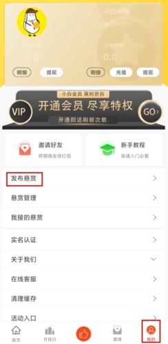 1、在我的頁面中點擊發(fā)布懸賞按鈕;